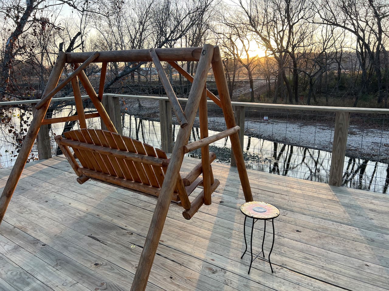 This cabin has direct access to the creek we have 50 acres and you can walk along the creek for up to 1800 feet and explore the areas around it. We have five other cabins, so there are other people there, but there’s plenty of room to wander and enjoy beauty.