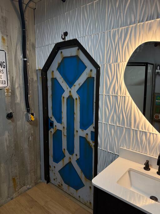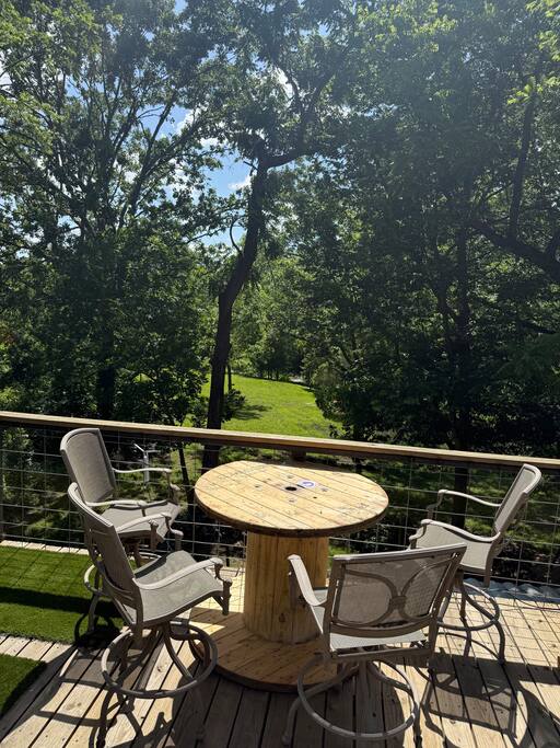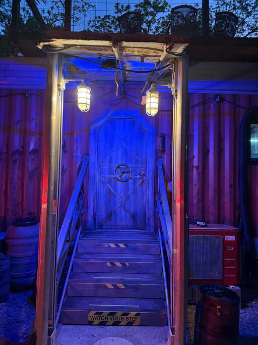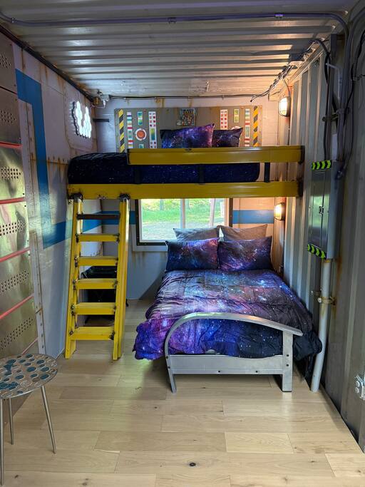 Make memories at this one of a kind space cabin. Shipping containers were used to make this cabin look like a space outpost. With a rooftop deck overlooking Flint Creek, and a relaxing place to look at stars, you will never forget it. 2 sets of bunkbeds and a queen size master bed mean that you can fit the entire family. Outside you’ll find a hot tub, a Rooftop patio, telescope and relaxing area, a outdoor patio, a fire ring, and access to go play in or float down Flint Creek.
