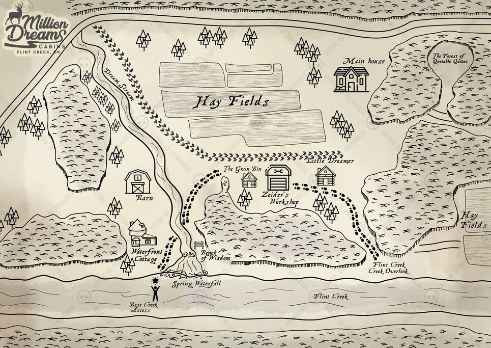 The property Everyone that is staying in A Million Dreams Cabins will have access to the property . Pets: We LOVE pets, but many shed and make messes, so we charge a $25 fee per pet per stay. (Much cheaper than boarding them) BUT- you have to book them. Failure to book them is a $75 fee for cleaning. (Please book them) We have to respect people’s privacy. You are welcome to walk around the property and take a look at things. We have 50 acres. If you do walk up on someone else’s cabin, we ask that you just be respectful . Access to the creek : There are three main access points to the creek . Meaning there’s three areas that we have cleared away so you can get in and out of the creek really easily, of course you’re welcome to trench through the trees and the tall grass if you choose. One is near the waterfall. This one is in between two cabins, so when you are walking towards the waterfall, just stay close to the stream that leads up to the creek so that you don’t end up in somebody’s backyard. The overlook : there is some rocks that are stairsteps down by the overlook. That is the deck that overhangs over the creek, you can get down to the creek on either side of the overlook if you choose. The water is gonna be a little bit deeper there so depending on what you’re trying to accomplish just be careful. Down the trail … if you were standing facing the creek near the overhang if you go to your left, there’s a trail back there. The difficulty with the trail is out when we get lots of rain it gets muddy. But for the rest of the year it is fine. If you walk back along that trail, there will be an access point at the creek and it is a shallower access point. Storms and turbulent weather: We do have a storm shelter: When you pull into the property, and the road curves to the left, follow it all the way down, past the large cabin on the left with the bright tree. It is right behind it, a big green building. The entrance will say tornado shelter, and the code is 7777. There are benches and lanterns in there. Sadly, we will not get power in there till mid July at this point. If the weather is making you nervous, feel free to head over to that building. You do not have to ask, just go be safe. Laundry Clarification: yes there is laundry nearby. We have utility building that has a washer and dryer in it and if you have an emergency, let us know. We can figure out how to help you out. TV- The cabin is equipped with a Roku TV. You can sign in as a guest, and then stream with your favorite streaming service. Going to a cabin without s’mores is like a campfire without stars — simply unthinkable! ✨ We refuse to let such a tragedy befall your stay, so every guest receives a starter s’mores kit of wonder. Inside you’ll find everything you need to spark the magic: roasting sticks, a firestarter, a lighter, fluffy clouds of marshmallows, graham crackers, and Hershey’s chocolate squares just waiting to melt into gooey perfection. So gather ‘round the crackling fire, share a few laughs, and let us handle the marshmallows — you just make the memories. 🔥🍫💫 Surprise your loved one with a snuggly welcome! Choose a plush otter, beaver, golden retriever, lion, or Little Dreamer. 🦦🐾🦁 $14.99 + tax, 48-hour notice please. 💫