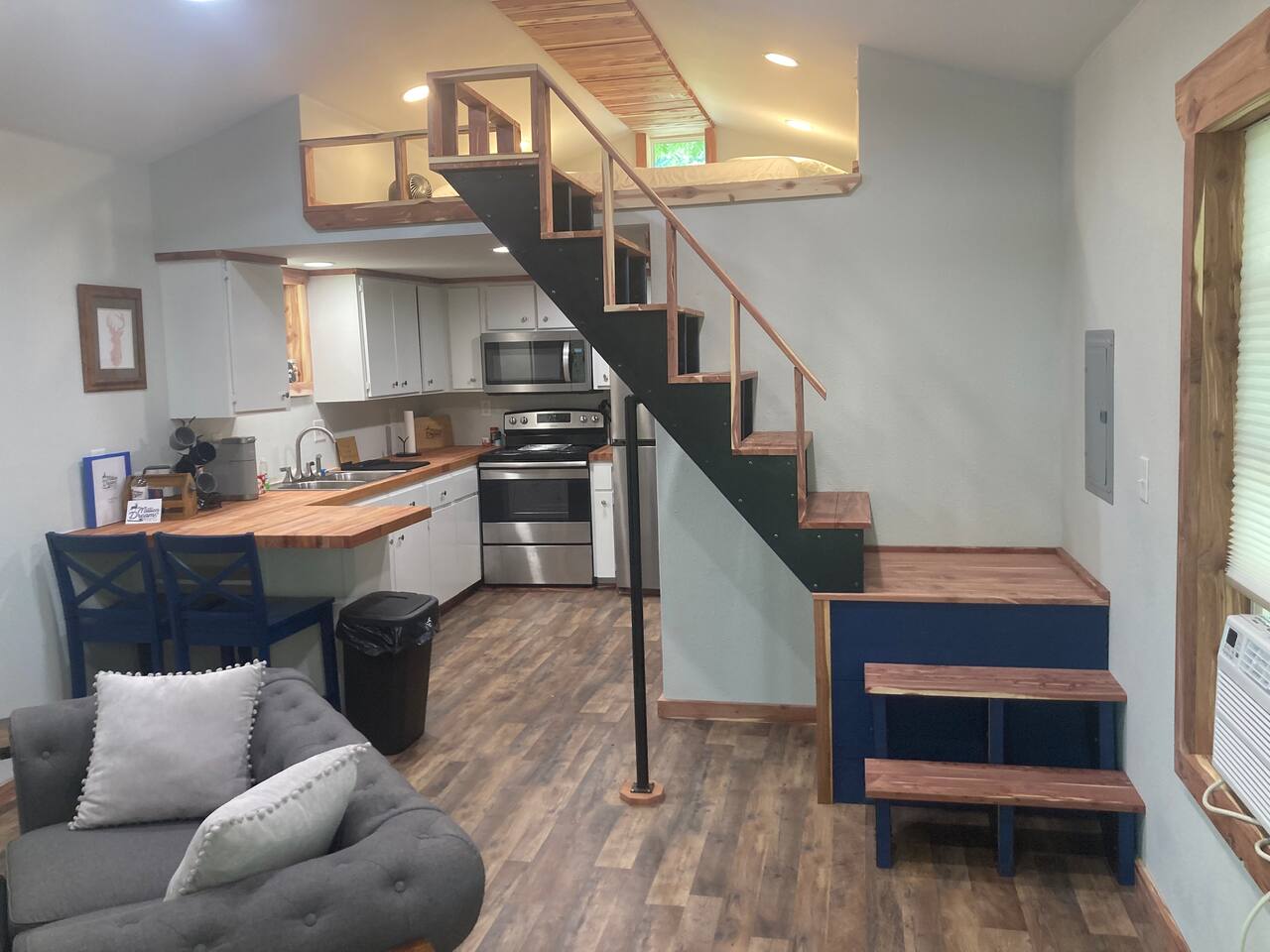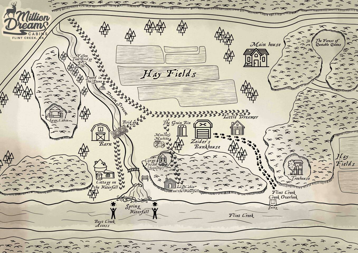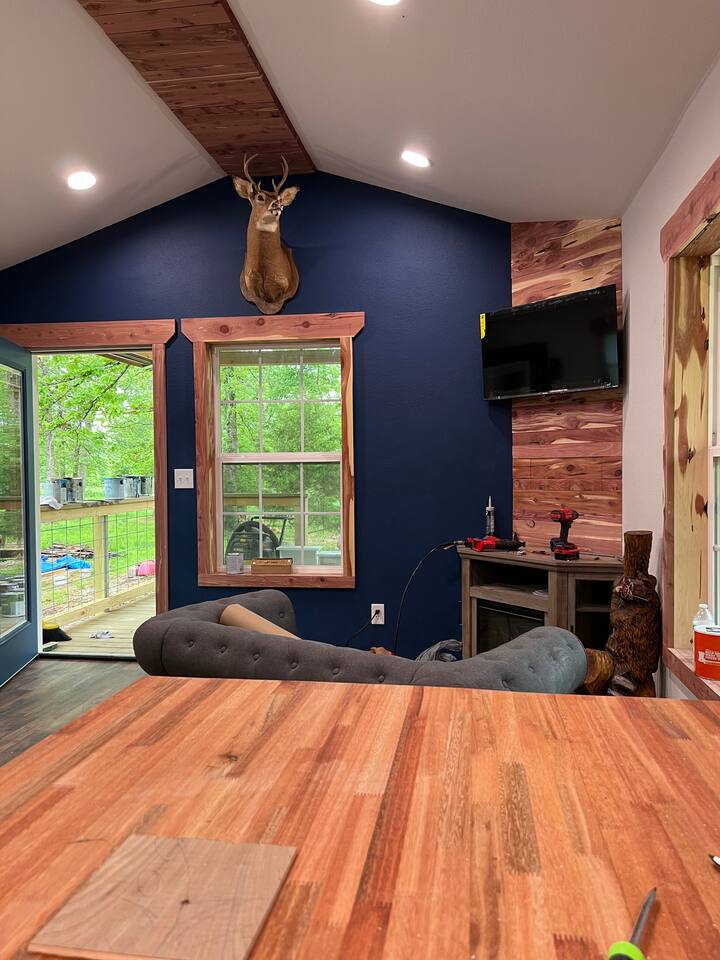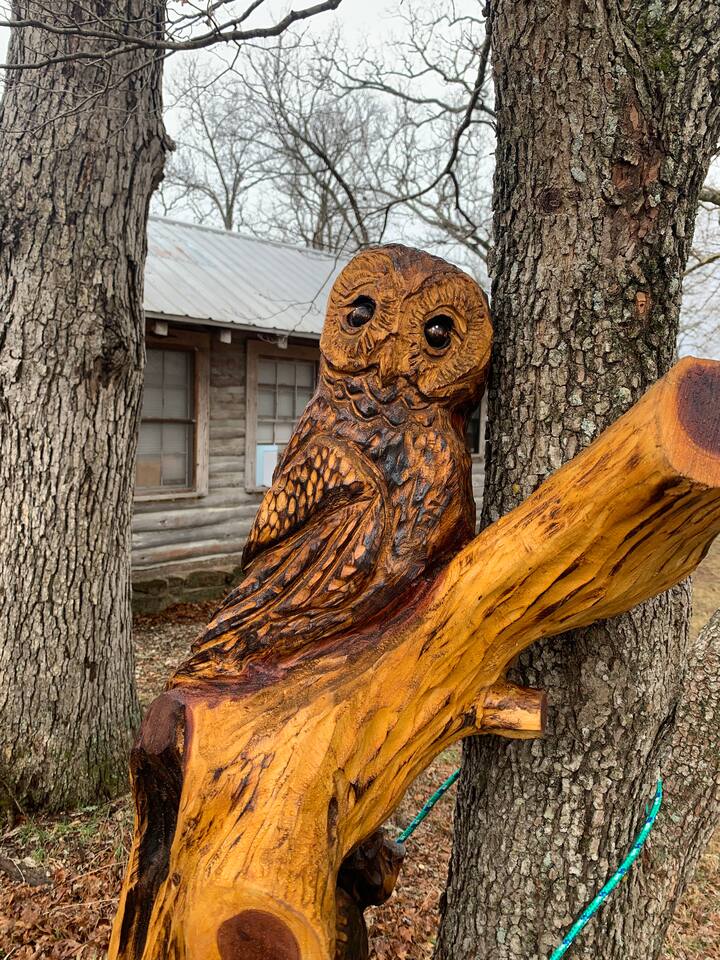 This is a tiny home, it does have stairs going to the loft. Full sized kitchen, wrap around porch where you can sit and relax and listen to the sounds of nature. 3 min walk down the path will take you to Historic Flint Creek, to enjoy even more nature. Hot tub: yes, our hot tub does work. We could ask that quite often. We do, however, keep the temperature at 100. Pets: We LOVE pets, but many shed and make messes, so we charge a $25 fee per pet per stay. (Much cheaper than boarding them) BUT- you have to book them. Failure to book them is a $75 fee for cleaning. (Please book them) We also provide: The Grill: It is a propane grill. Inner tubes: We will provide 2 river quality tubes for use. Please use them with care. Firewood: In an effort to keep costs low, we have calculated average use of firewood, and we set it as part of the price. Each Cabin will be allotted 2 bundles of firewood for their use. Those staying 4 days or longer will get an extra bundle. If you feel like you need more firewood, we have a couple of options. There is plenty of wood around from fallen limbs, etc. around if you feel like foraging. OR we have a rack that is right next to the watershed mid property with bundles on it. On the rack you can pick up extra bundles for $10 each or if you are the kind that wants to burn all the time, you can get the Pyromaniac package. This will provide 60+ pieces to burn however much you need to. Quirks- every cabin has a weird quirk. The water pipe froze in the shower this Christmas. Apparently we put the new faucet in backwards. So if the shower doesnāt work one way, just switch it. In the late 1830's the Hildebrand-Beck Mill was being built, right across the street from our property, along the creek. It was one of the oldest working mills in the U.S. During the civil war, federal troops occupied this land. After the war, in 1872 Ezekial Proctor accidentally shot Pauline Hildebrand and touched off a feud that resulted in an shootout at the Goingsnake Court House. The threads of the tapestry of history have woven in and out on this quiet setting on Flint Creek. The property Everyone that is staying in A Million Dreams Cabins will have access to the property . We have to respect peopleās privacy. You are welcome to walk around the property and take a look at things. We have 50 acres. If you do walk up on someone elseās cabin, we ask that you just be respectful . Access to the creek : There are three main access points to the creek . Meaning thereās three areas that we have cleared away so you can get in and out of the creek really easily, of course youāre welcome to trench through the trees and the tall grass if you choose. One is near the waterfall. This one is in between two cabins, so when you are walking towards the waterfall, just stay close to the stream that leads up to the creek so that you donāt end up in somebodyās backyard. The overlook : there is some rocks that are stairsteps down by the overlook. That is the deck that overhangs over the creek, you can get down to the creek on either side of the overlook if you choose. The water is gonna be a little bit deeper there so depending on what youāre trying to accomplish just be careful. Down the trail ⦠if you were standing facing the creek near the overhang if you go to your left, thereās a trail back there. The difficulty with the trail is out when we get lots of rain it gets muddy. But for the rest of the year it is fine. If you walk back along that trail, there will be an access point at the creek and it is a shallower access point. Storms and turbulent weather: We do have a storm shelter: When you pull into the property, and the road curves to the left, follow it all the way down, past the large cabin on the left with the bright tree. It is right behind it, a big green building. The entrance will say tornado shelter, and the code is 7777. There are benches and lanterns in there. Laundry Clarification: yes there is laundry nearby. We have utility building that has a washer and dryer in it and if you have an emergency, let us know. We can figure out how to help you out. TV- The cabin is equipped with a Roku TV. You can sign in as a guest, and then stream with your favorite streaming service. Going to a cabin without sāmores is like a campfire without stars ā simply unthinkable! ⨠We refuse to let such a tragedy befall your stay, so every guest receives a starter sāmores kit of wonder. Inside youāll find everything you need to spark the magic: roasting sticks, a firestarter, a lighter, fluffy clouds of marshmallows, graham crackers, and Hersheyās chocolate squares just waiting to melt into gooey perfection. So gather āround the crackling fire, share a few laughs, and let us handle the marshmallows ā you just make the memories. š„š«š« Surprise your loved one with a snuggly welcome! Choose a plush otter, beaver, golden retriever, lion, or Little Dreamer. š¦¦š¾š¦ $14.99 + tax, 48-hour notice please. š«