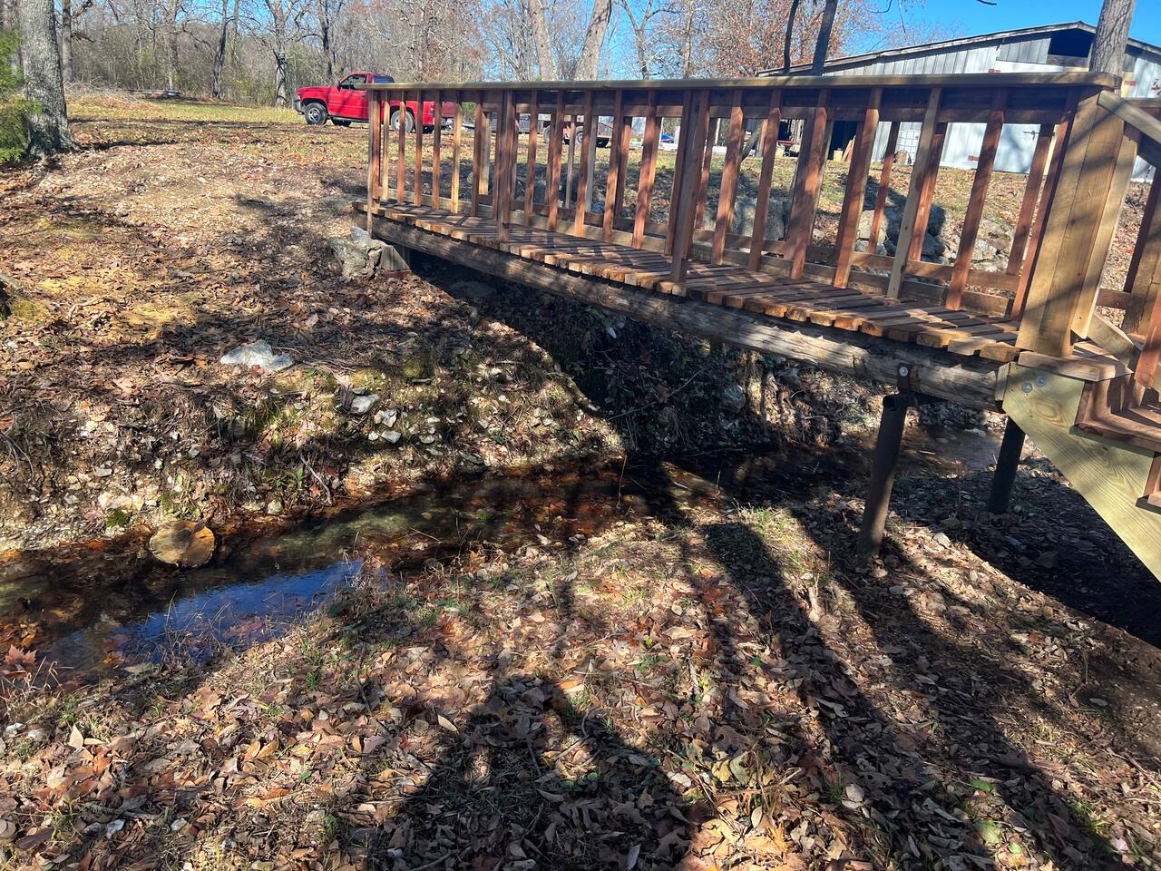 This is private land to Oklahomas Beautiful Flint Creek. We currently have 3 cabins on the property, so you may see some neighbors, IF they are all out there at the same time. The property has creek access where you can walk to the creek. We do not have a beach to back a vehicle to the creek, but its more of a private access.