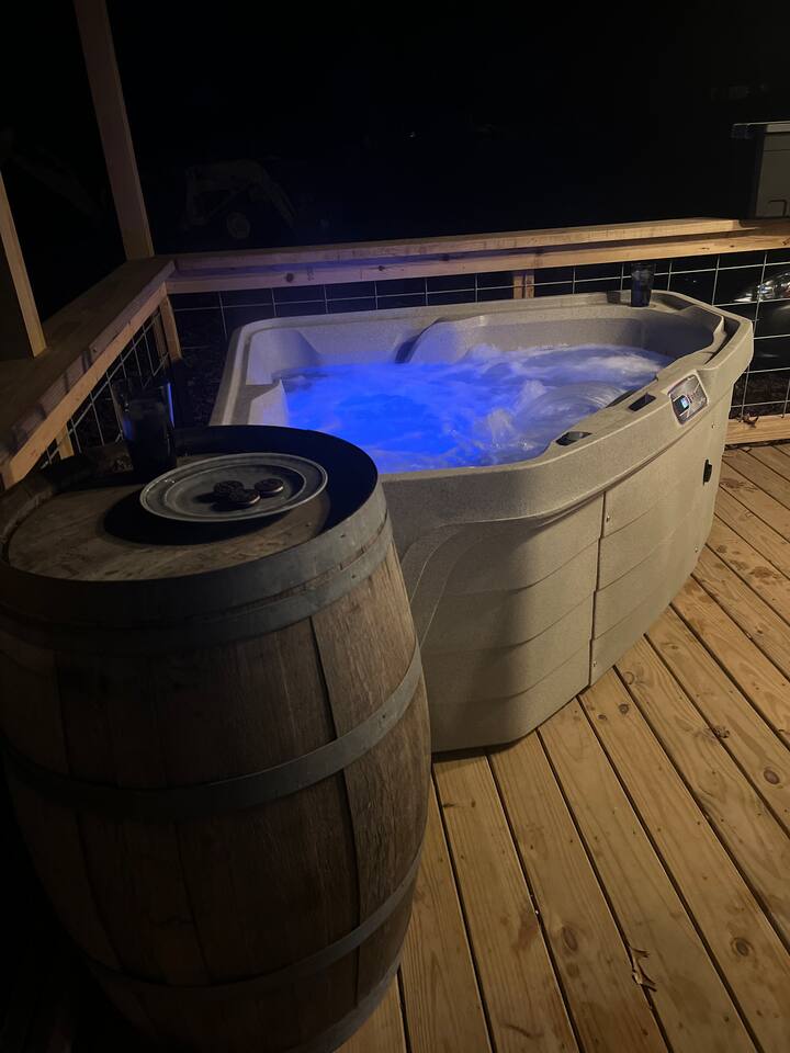Enjoy the sounds of nature when you stay in this real life grain bin that was built on site, using local timber. Currently its a tiny home getaway that we converted. It has a modern rustic interior, wrap around porch, and fire pit. Perfect for relaxing, hiking, tubing, or fishing. and at the end of the day, relax in your own hot tub!