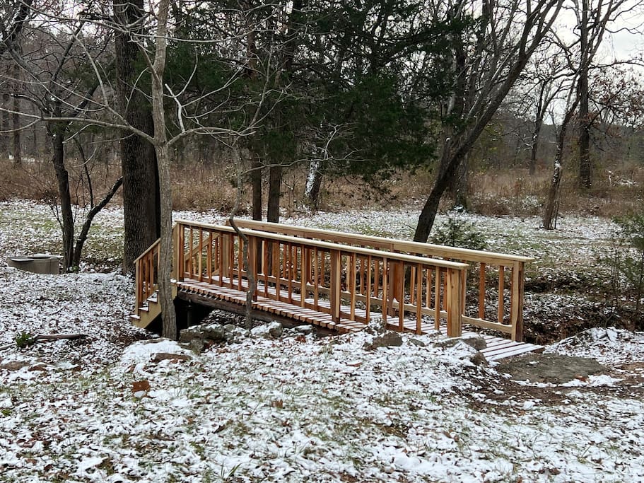 Though it’s a 3000+ square foot facility it’s not meant to have a party. Casual get togethers, yes. Other cabins are nearby, and And we need to respect all of them. If its a school or youth group function, please reach out. What we want to stay away from is party type scenarios, But large groups are OK. Kick back and relax. If you see an empty hammock, feel free to enjoy it. There are some fire starters in your welcome basket for your campfire. We provide 20 pieces of firewood complimentary based on average uses. There are always limbs and branches around for you to gather more if you would like. However, if you would like, we provide additional bundles at $10 per bundle, or you can get the Pyromaniac package and we will provide you 60+ to have lots of firewood. This is available on site. Want to go to the Creek? There are multiple trails leading to go to the creek. If you want to enjoy the water, the best access is by the waterfall. There is no place to drive a car to access the creek. But it does not take much to get down to the creek, its about 15 feet down an incline that is stair stepped. Enjoy your time!! Pets: We LOVE pets, but many shed and make messes, so we charge a $25 fee per pet per stay. (Much cheaper than boarding them) BUT- you have to book them. Failure to book them is a $75 fee for cleaning. (Please book them) Cleaning: we provide standard cleaning. We don’t mind doing light cleaning, obviously we will take care of sweeping, mopping, trash, etc. However, if you decide to have a feast, and use a mass amount of dishes and pans and leave them just sitting around for us to clean, there is an additional $75 cleaning fee. Also- in an effort to keep cost low we made the cost structure where if a normal family is renting it, it is affordable. However, on some occasions, people have rented it, and then brought additional guests to stay the night. Please list the additional guests on your reservation. The standard reservation fee covers up to six people. Anything over that is $25 a day per person. Any additional people over your reservation that you have not specifically discussed with ahead of time will be an additional $100 per night per person. (when we set up the Cabins, we set up the cabins based on the number that are on the reservation, when additional people start showing up there becomes a lot of extra work on our side to make sure you have the items that you need in the cabin for a perfect stay. We provide a Propane Grill AND a Blackstone Griddle for you to enjoy! Inner tubes: We will provide 2 river quality tubes for use. Please use them with care. The property Everyone that is staying in A Million Dreams Cabins will have access to the property . We have to respect people’s privacy. You are welcome to walk around the property and take a look at things. We have 50 acres. If you do walk up on someone else’s cabin, we ask that you just be respectful . Access to the creek : There are three main access points to the creek . Meaning there’s three areas that we have cleared away so you can get in and out of the creek really easily, of course you’re welcome to trench through the trees and the tall grass if you choose. One is near the waterfall. This one is in between two cabins, so when you are walking towards the waterfall, just stay close to the stream that leads up to the creek so that you don’t end up in somebody’s backyard. The overlook : there is some rocks that are stairsteps down by the overlook. That is the deck that overhangs over the creek, you can get down to the creek on either side of the overlook if you choose. The water is gonna be a little bit deeper there so depending on what you’re trying to accomplish just be careful. Down the trail … if you were standing facing the creek near the overhang if you go to your left, there’s a trail back there. The difficulty with the trail is out when we get lots of rain it gets muddy. But for the rest of the year it is fine. If you walk back along that trail, there will be an access point at the creek and it is a shallower access point. Storms and turbulent weather: We do have a storm shelter: When you pull into the property, and the road curves to the left, follow it all the way down, past the large cabin on the left with the bright tree. It is right behind it, a big green building. The entrance will say tornado shelter, and the code is 7777. There are benches and lanterns in there. Sadly, we will not get power in there till mid July at this point. If the weather is making you nervous, feel free to head over to that building. You do not have to ask, just go be safe. Laundry Clarification: yes there is laundry nearby. We have utility building that has a washer and dryer in it and if you have an emergency, let us know. We can figure out how to help you out. TV- The cabin is equipped with a Roku TV. You can sign in as a guest, and then stream with your favorite streaming service. Going to a cabin without s’mores is like a campfire without stars — simply unthinkable! ✨ We refuse to let such a tragedy befall your stay, so every guest receives a starter s’mores kit of wonder. Inside you’ll find everything you need to spark the magic: roasting sticks, a firestarter, a lighter, fluffy clouds of marshmallows, graham crackers, and Hershey’s chocolate squares just waiting to melt into gooey perfection. So gather ‘round the crackling fire, share a few laughs, and let us handle the marshmallows — you just make the memories. 🔥🍫💫 Surprise your loved one with a snuggly welcome! Choose a plush otter, beaver, golden retriever, lion, or Little Dreamer. 🦦🐾🦁 $14.99 + tax, 48-hour notice please. 💫